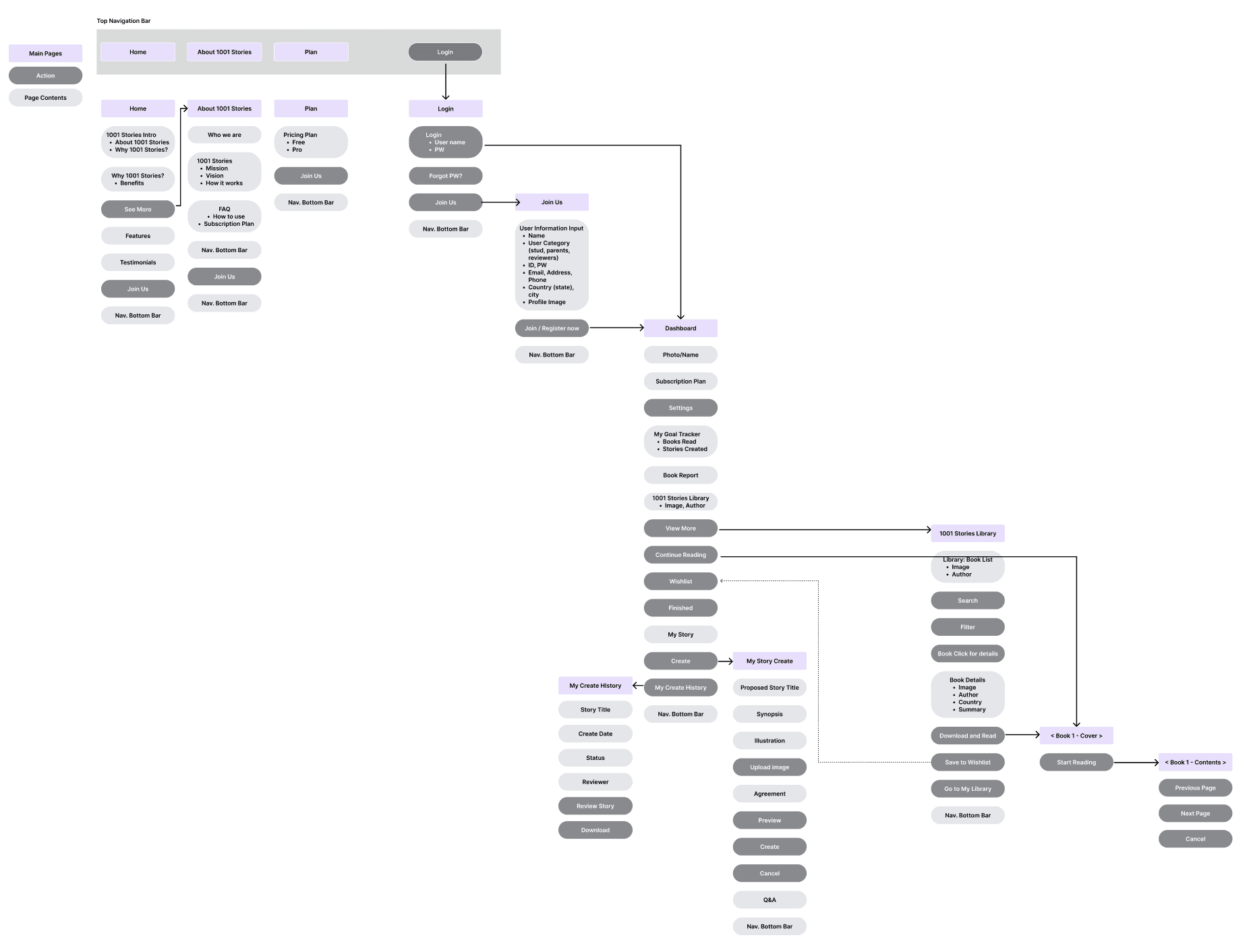 We created an information architecture following a user's interaction with our product